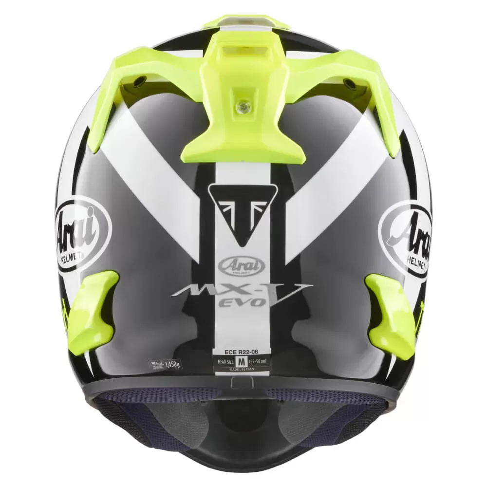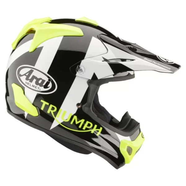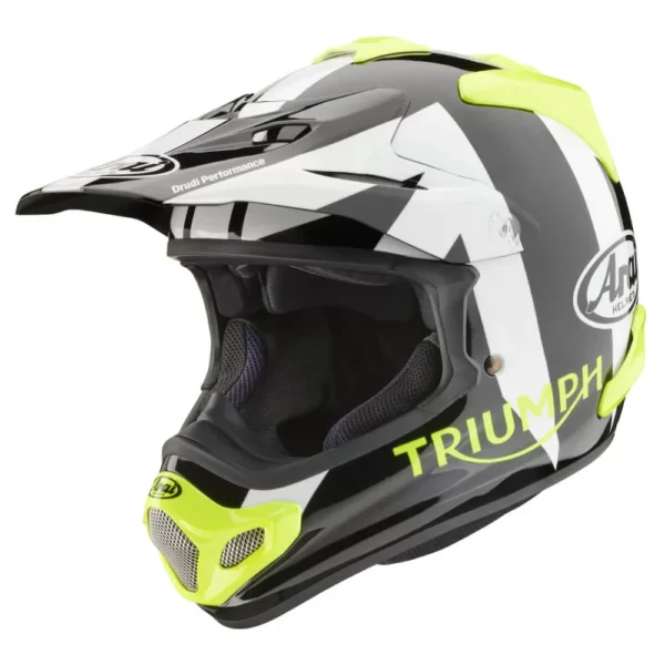 l casco Triumph x Arai MX-V EVO unisce la decennale esperienza di Arai nelle competizioni a un design all’avanguardia per motocross, enduro e fuoristrada.